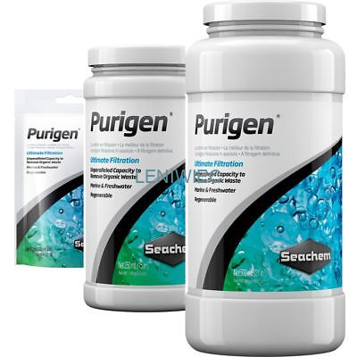 Usuwając organiczne zanieczyszczenia pozwala na skuteczne wyeliminowanie ze zbiornika amoniaku, azotanów i azotynów, jednocześnie nie pozbawiając wody cennych pierwiastków śladowych. W znaczący sposób podwyższa redukcyjno – oksydacyjny potencjał wody i sprawia, że nabiera ona krystalicznej przejrzystości. Granulki Purigenu w miarę zużywania się ciemnieją, produkt może jednak zostać poddany regeneracji za pomocą wybielacza używanego w gospodarstwie domowym. Przeznaczony jest do akwariów morskich i słodkowodnych.